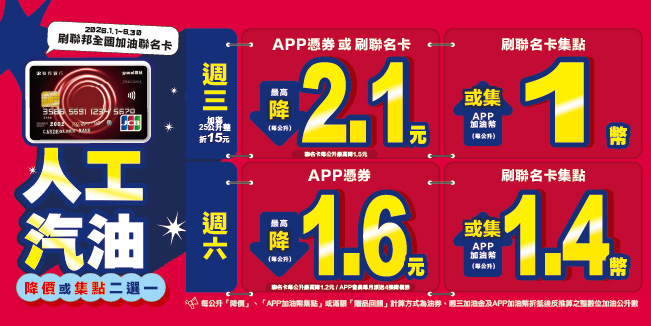 聯邦全國加油聯名卡、大利會員卡人工柴油每公升最高降1.5元!