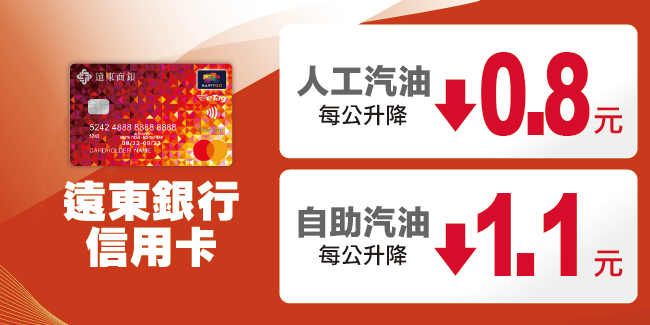刷遠東銀行信用卡汽油|人工每公升降0.8元、自助每公升降1.1元