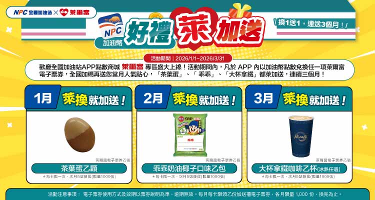 累積APP加油幣可兌換眾多品牌商品,詳請參見全國加油站APP。